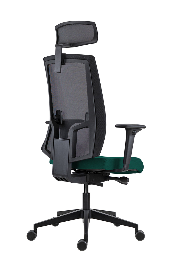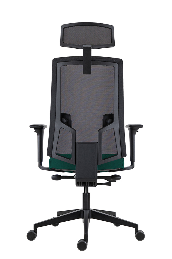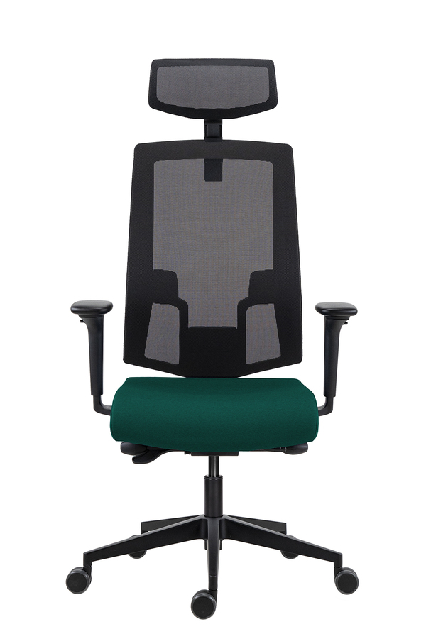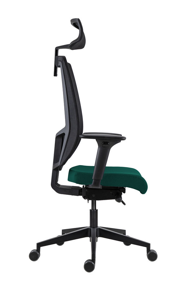Scaun de Birou Lapel PRO cu Tetieră, Cadru Negru, Mesh Negru, Șezut Verde-Închis, Bază Neagră