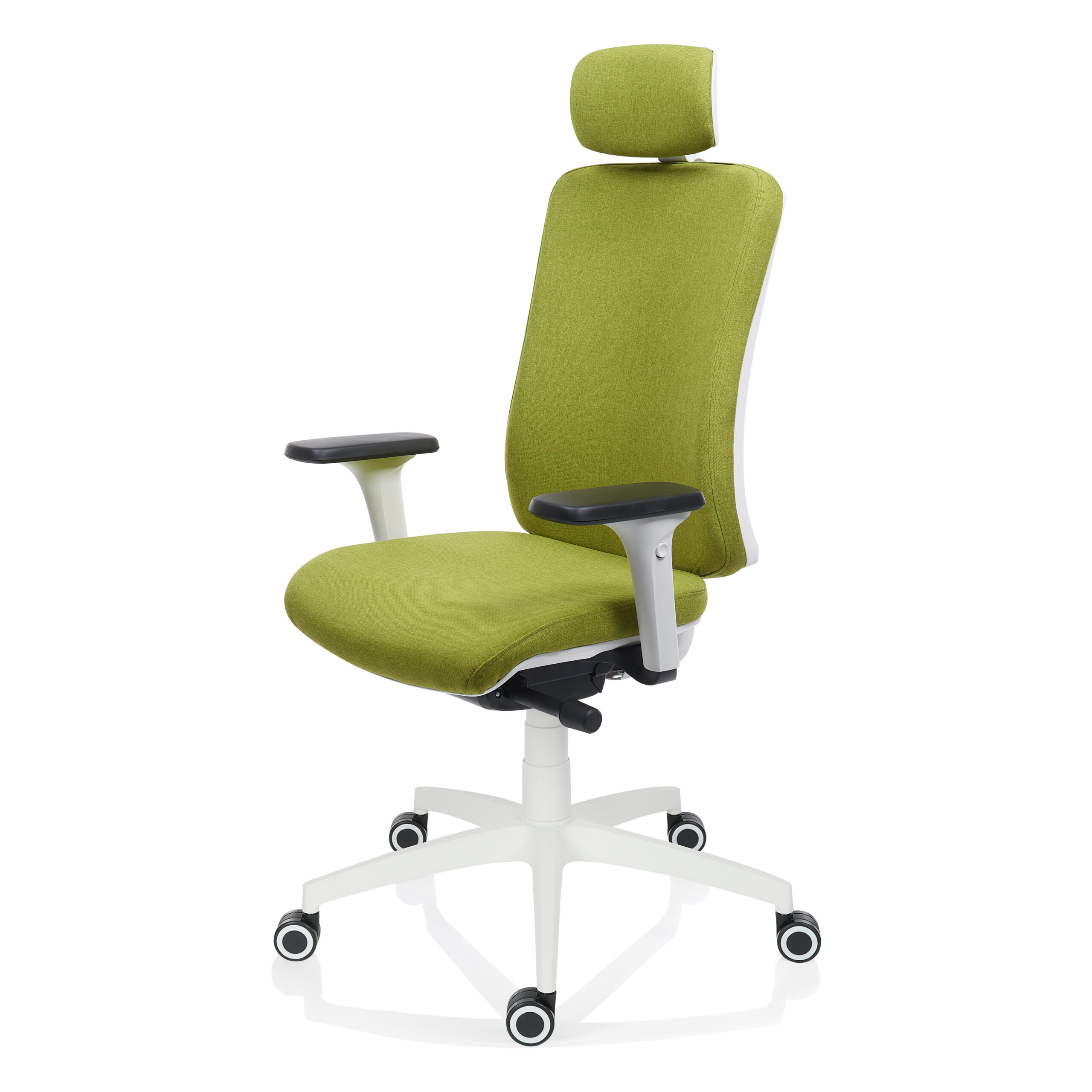 Constructia solidă a PURE, cu o bază stea piramidală din polipropilenă și role gumate, asigură stabilitate și o mișcare fluidă pe orice tip de suprafață. Scaunul este tapițat cu un material textil rezistent, iar finisajul elegant de culoare verde se potrivește cu orice decor de birou.