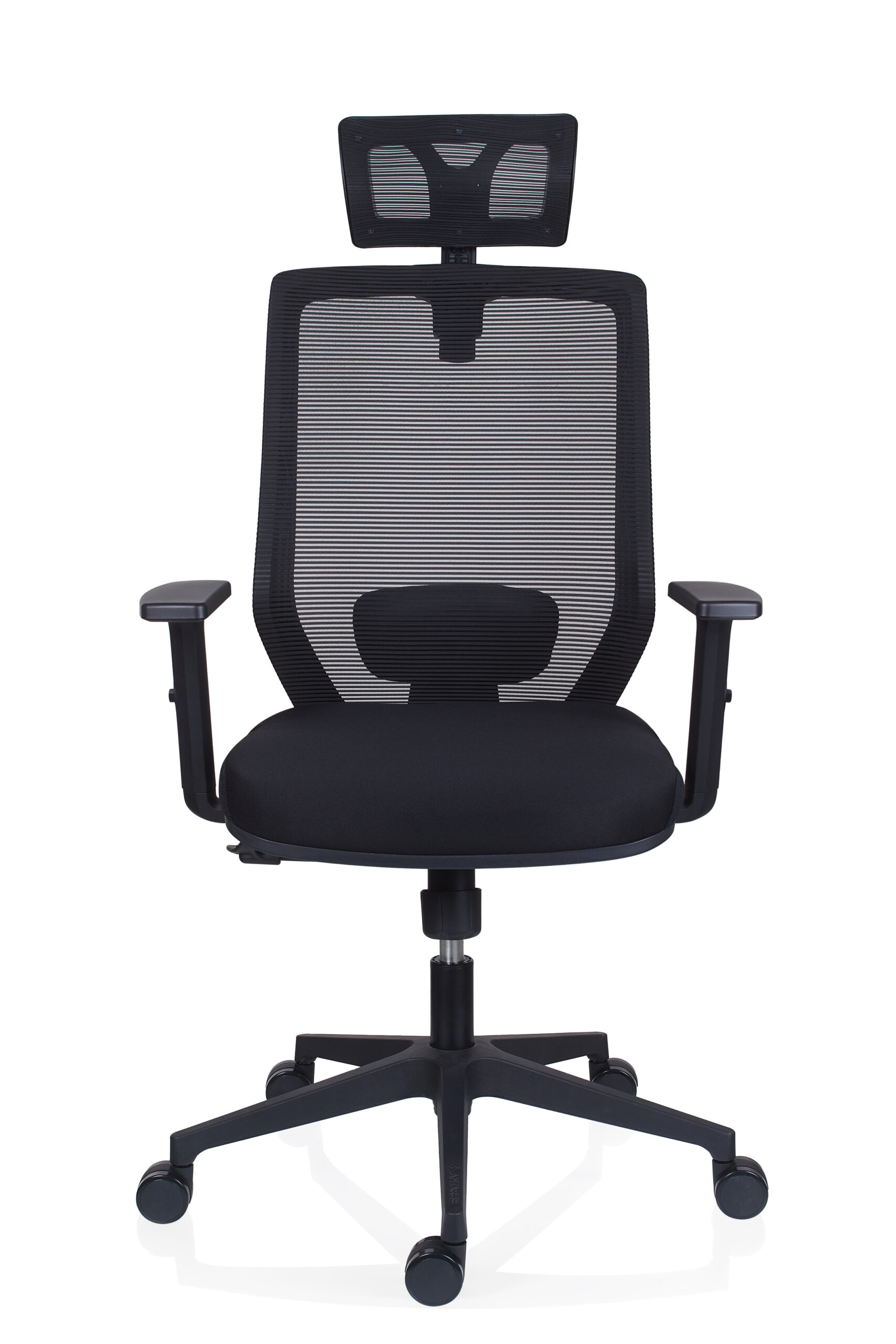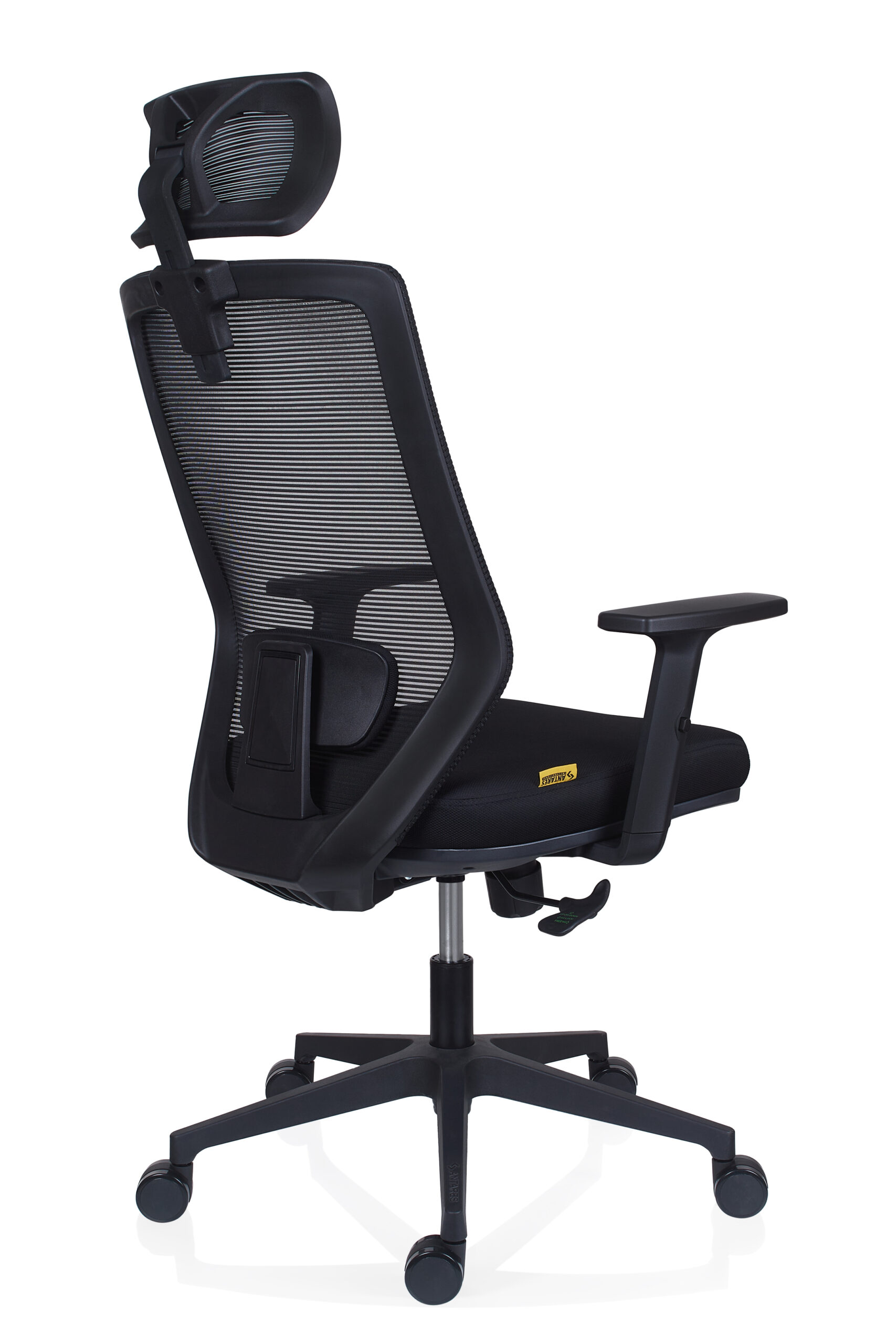 Scaun de birou Zen cu Tetieră, Mesh Negru, Șezut Negru